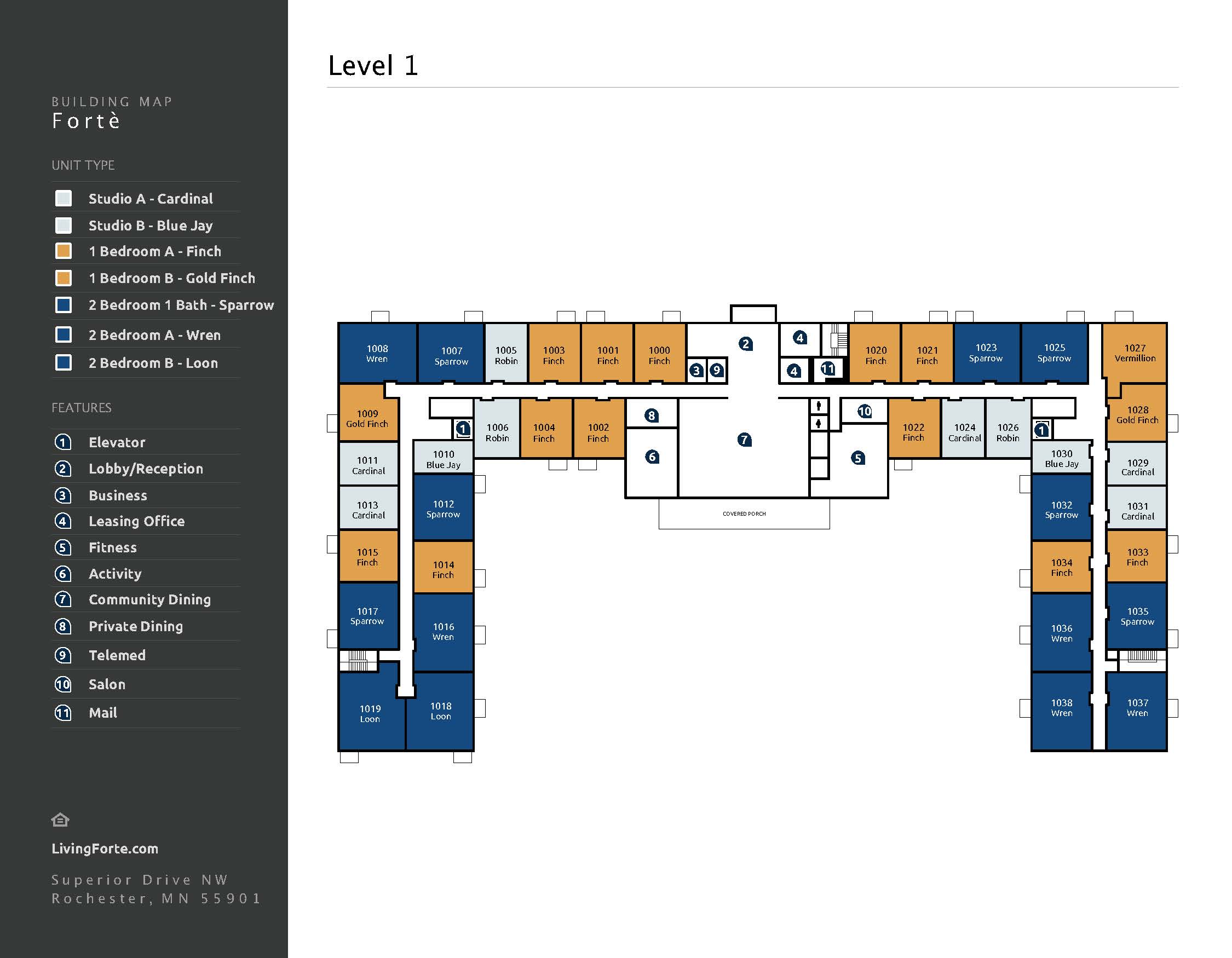 Located at 3955 Superior Drive NW, Rochester, MN 55901, Forté of Rochester I is a premier 55+ apartment communityoffering elevated living in Northwest Rochester. With 127 well-appointed apartments across 125,600 square feet, this vibrant community is designed for active adults who value connection, convenience, and comfort.